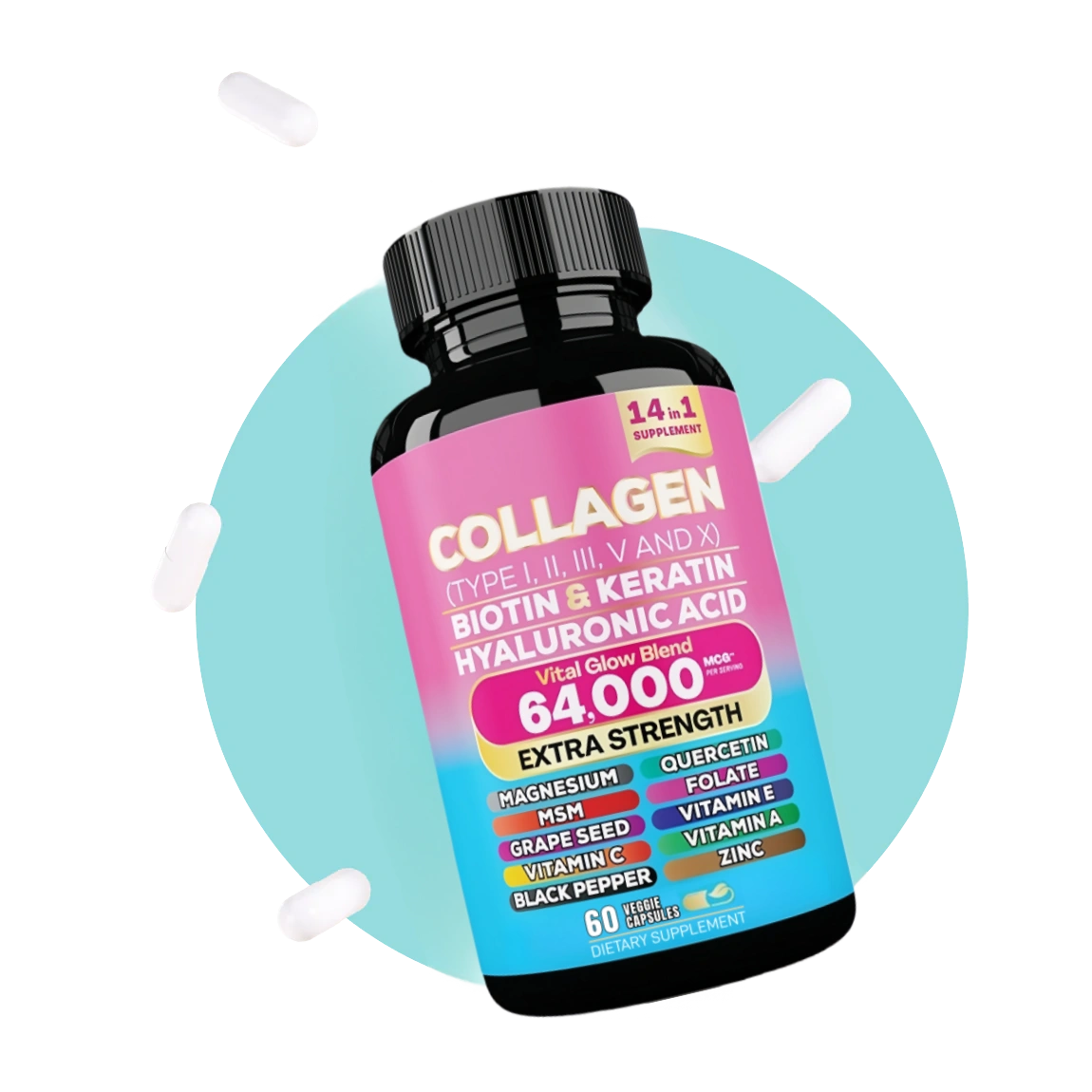 Our Collagen Complex is one of the most potent on the market, formulated with natural ingredients to help fight fine lines, wrinkles, brittle nails and flat hair.